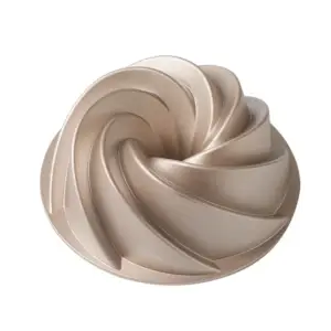 Įspūdingo dizaino šampano spalvos kepimo forma, pagaminta iš aukštos kokybės lieto aliuminio – medžiagos, kuri garantuoja maksimalų atsparumą dilimui ir absoliučiai nelimpančias savybes. Idealiai tinka tobulos formos saldiems ir pikantiškiems patiekalams gaminti.
