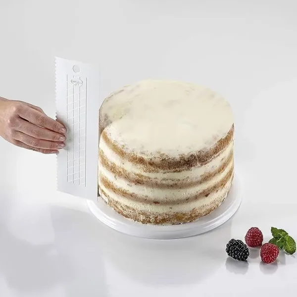 Itin aukšta torto lyginimo mentelė ne tik pagelbės lyginant torto šonus bei paviršių, bet ir dėka dantytos pusės suteiks Jūsų tortams dekoruotą paviršių.