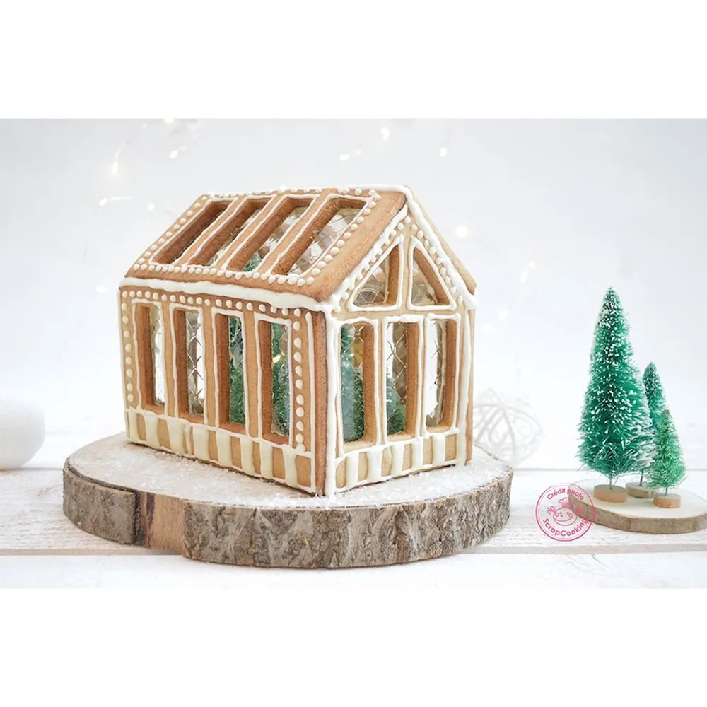 Scrapcooking rinkinys išskirtiniam meduoliniam nameliui pasigaminti. Jį sudaro 5 nerūdijančio plieno sausainių formelės ir 3 eglučių dekoracijos. Pasigaminkite įprastą namelį, namelį su daug stiklų ar net bažnyčią. Palikite aukštus langus atvirus arba užpildykite izomaltu/karamele įspūdingam efektui išgauti. Spalvotas izomaltas suteiks vitražo efektą. Užpildykite namelį žaluma ar figūrėlėmis.