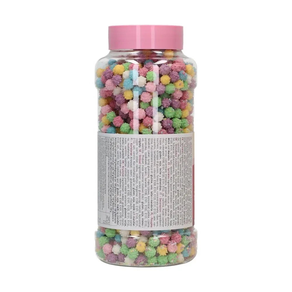 | Sudėtis: | cukrus, gliukozės sirupas, ryžių miltai, koncentratas (obuolių, juodųjų serbentų, ridikėlių, burokėlių), dažikliai (E100, E101, E120, E131, E132), druska, vanilinas |