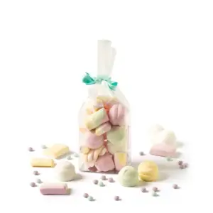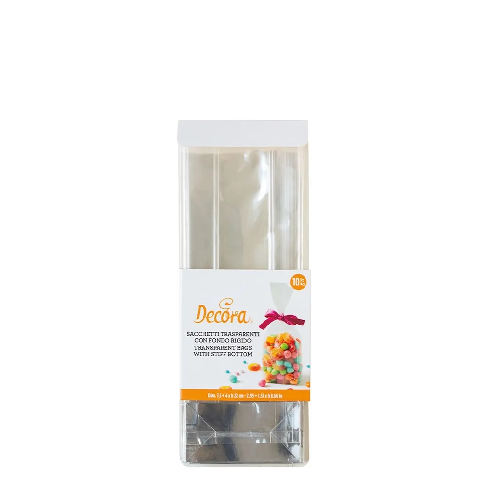 Plastikiniai maišeliai su praktišku standžiu pagrindu. Puikiai tinka saldumynams, saldainiams, sausainiams ir kitiems skanėstams supakuoti. Patogus standus kartoninis pagrindas leidžia maišeliui tvirtai stovėti.